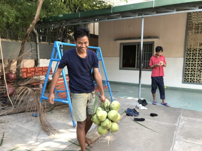 カンボジア孤児院便り「連係プレーでココナッツをゲット」