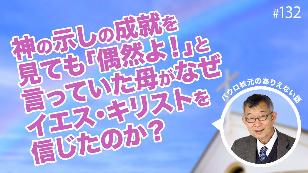 パウロ秋元動画パウロ秋元のありえない話新着無料 動画/パウロ秋元のありえない話 132「神の示しの成就を見ても『偶然よ!』と言っていた母の救い」 2021年8月11日 23:26 419 FacebookTwitter パウロ秋元牧師牧師の新しい動画シリーズ「パウロ秋元のありえない話」の132回目が公開された。
