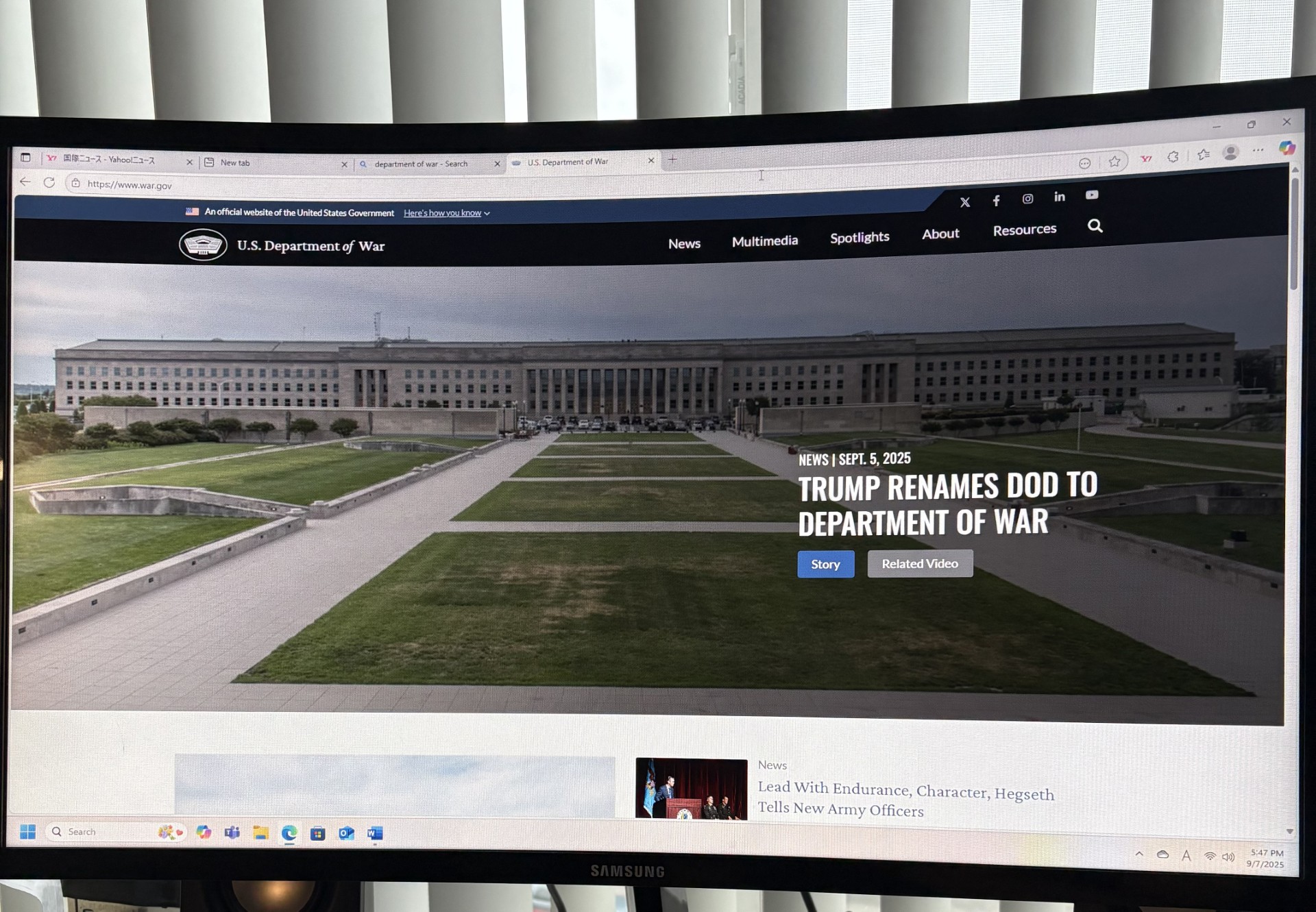 世界情勢新着海外 米大統領 国防総省を「戦争省」へ 改称の大統領令に署名 2025年9月9日 13:07 177 FacebookTwitter 国防総省のホームページ トランプ米大統領は9月5日、国防総省が「戦争省」という名称も使用できるようにする大統領令に署名した。 トランプ氏は「世界情勢を踏まえると、この名称こそがはるかに適切だ」と述べた。戦争省は二つの世界大戦に勝利した時の名称で、その名称に戻す この記事は有料記事です。 いますぐ登録して続きを読む 既存ユーザのログインユーザー名またはメールアドレスパスワード ログイン状態を保存する