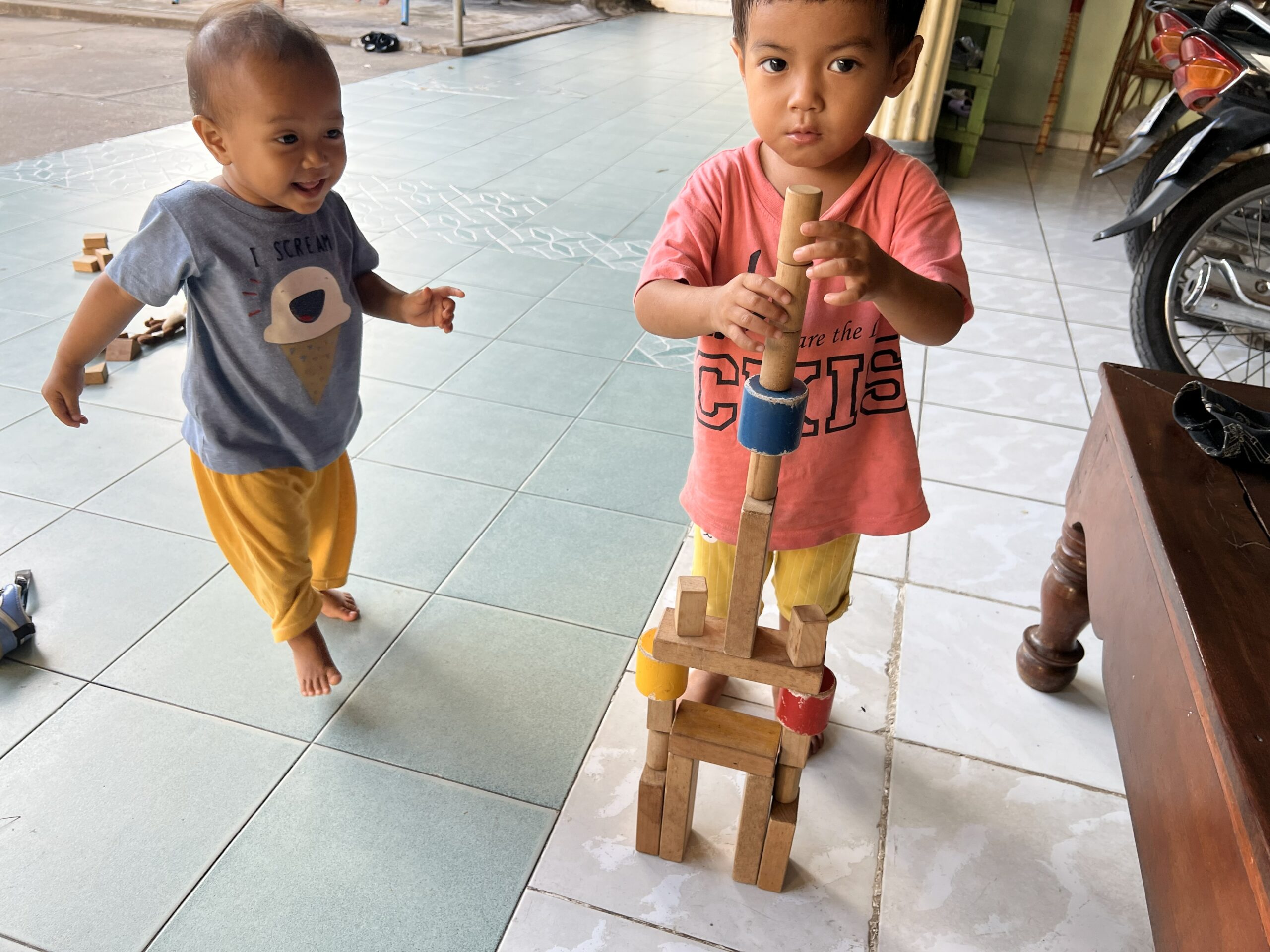 3兄弟との、なかなか楽しい日々を過ごしています。上の5歳のCHは、よく話し、よく遊び、ビックリしたのが物覚えがとても良いこと! 真ん中の3歳のSNは、食生活の見直しが必要で、孤児院に来た時から歯がボロボロ状態で、硬い物がなかなか食べれませ